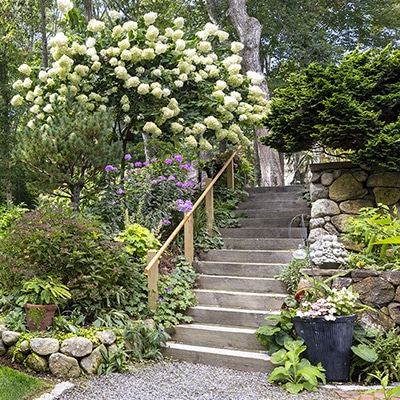 A quaint antique Cape in Chatham now has an old world-inspired landscape thanks to Bedworks Design, Inc.