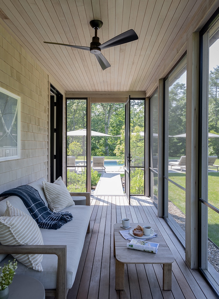 For Dave, it’s the diagonal view from the back of the house as he stands at the edge of the woods. “From there, you see the porches balancing each wing, the pool sparkling in the middle. It all comes together,” he says.